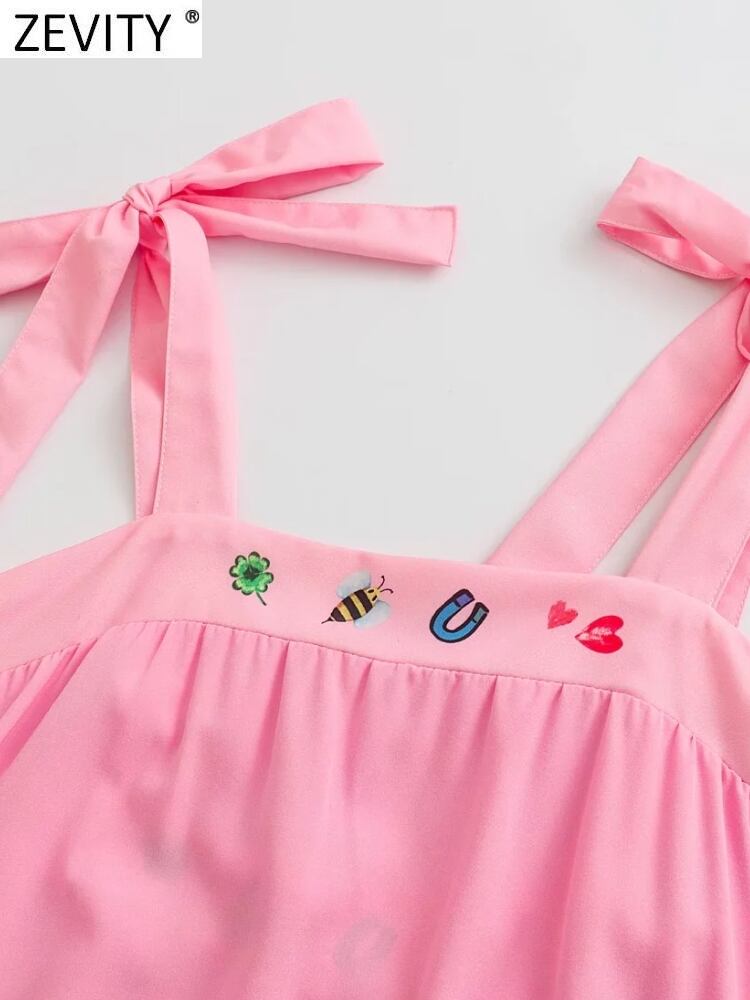 女性の甘い色のマッチングボウストラップミディドレスシックなレインボーストライププリーツサマースリング リボン 大人ガーリー スウィート キュート カジュアル 夏物
