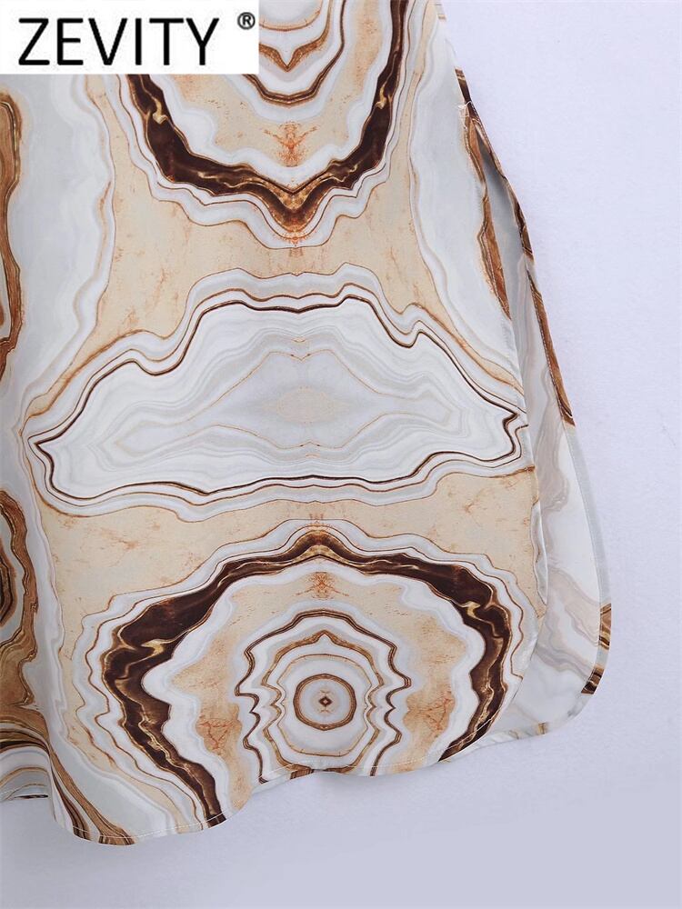 女性コントラストカラー幾何学的なPirntingミディドレスシックなVネックサイドジッパースプリットストレート