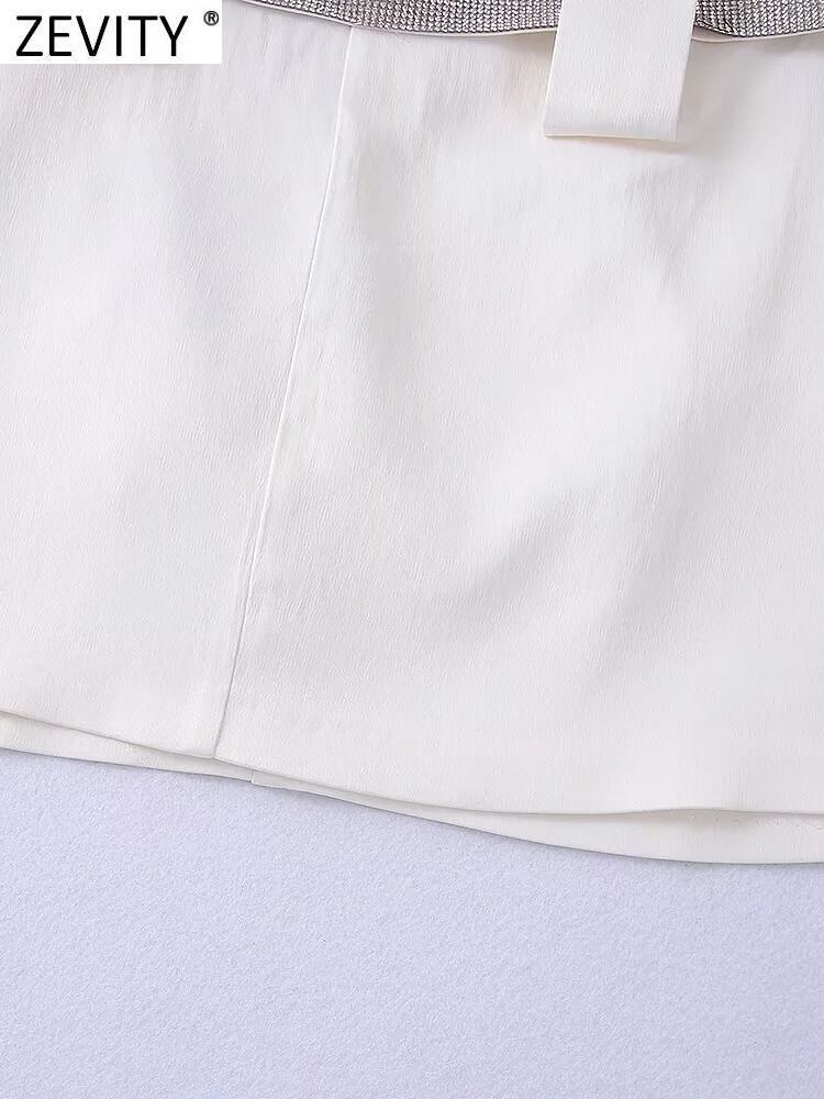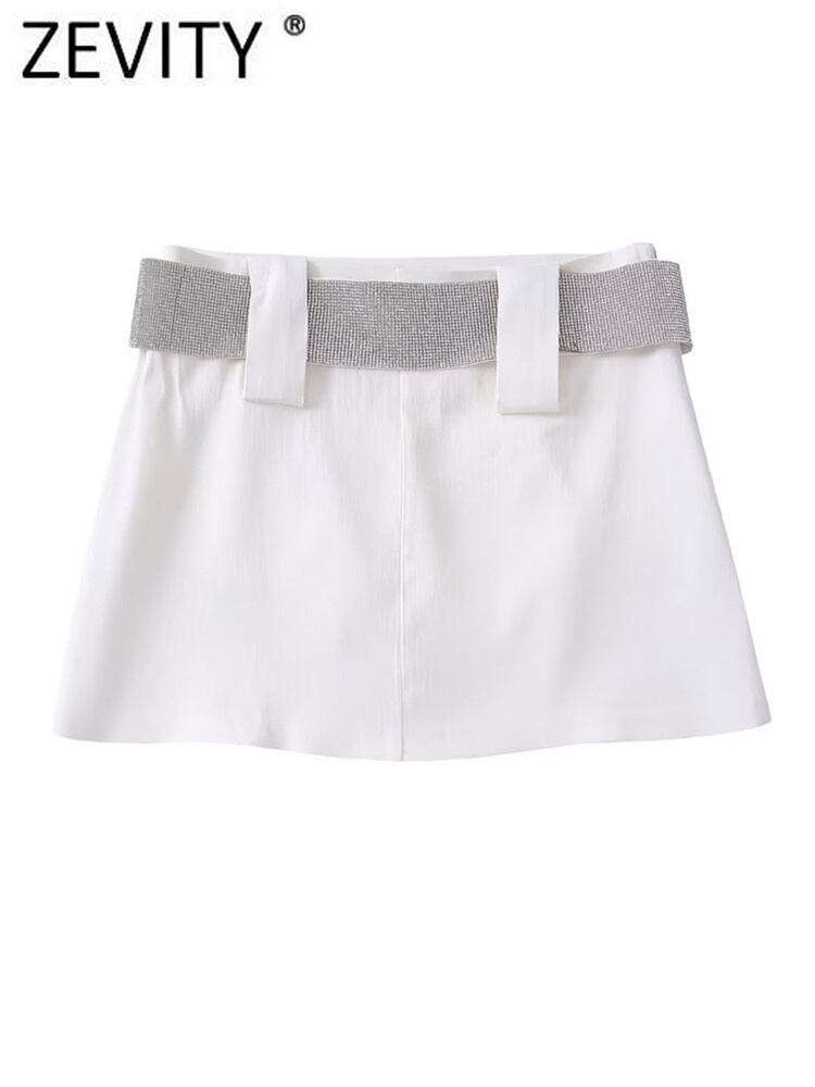 女性スパンコールサッシュデコレーションホワイトミニスカートファルダスシックサイドジッパー