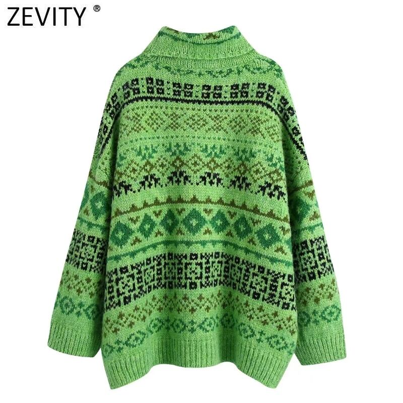 女性の幾何学的なプリントジャカードルーズニットセーターシックなプルオーバーストリートトップスSW1043