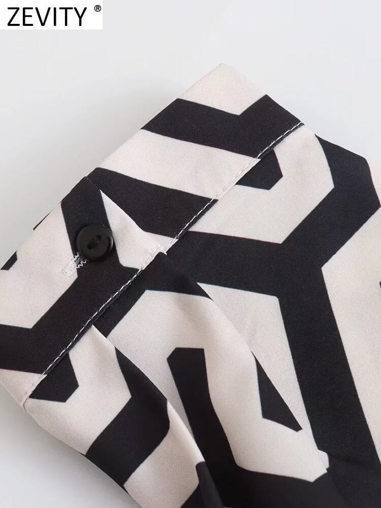 2022女性の幾何学的なプリントボタンプリーツミディドレスシックなターンダウンカラー