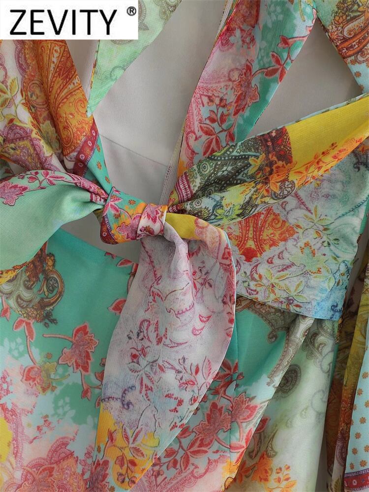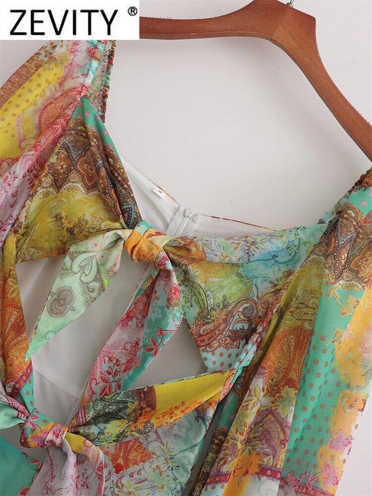 女性布トーテムフローラルパッチワークプリント中空アウトシフォンミディドレスシックな結び目 Vestidos DS1374 トートバッグ 花柄