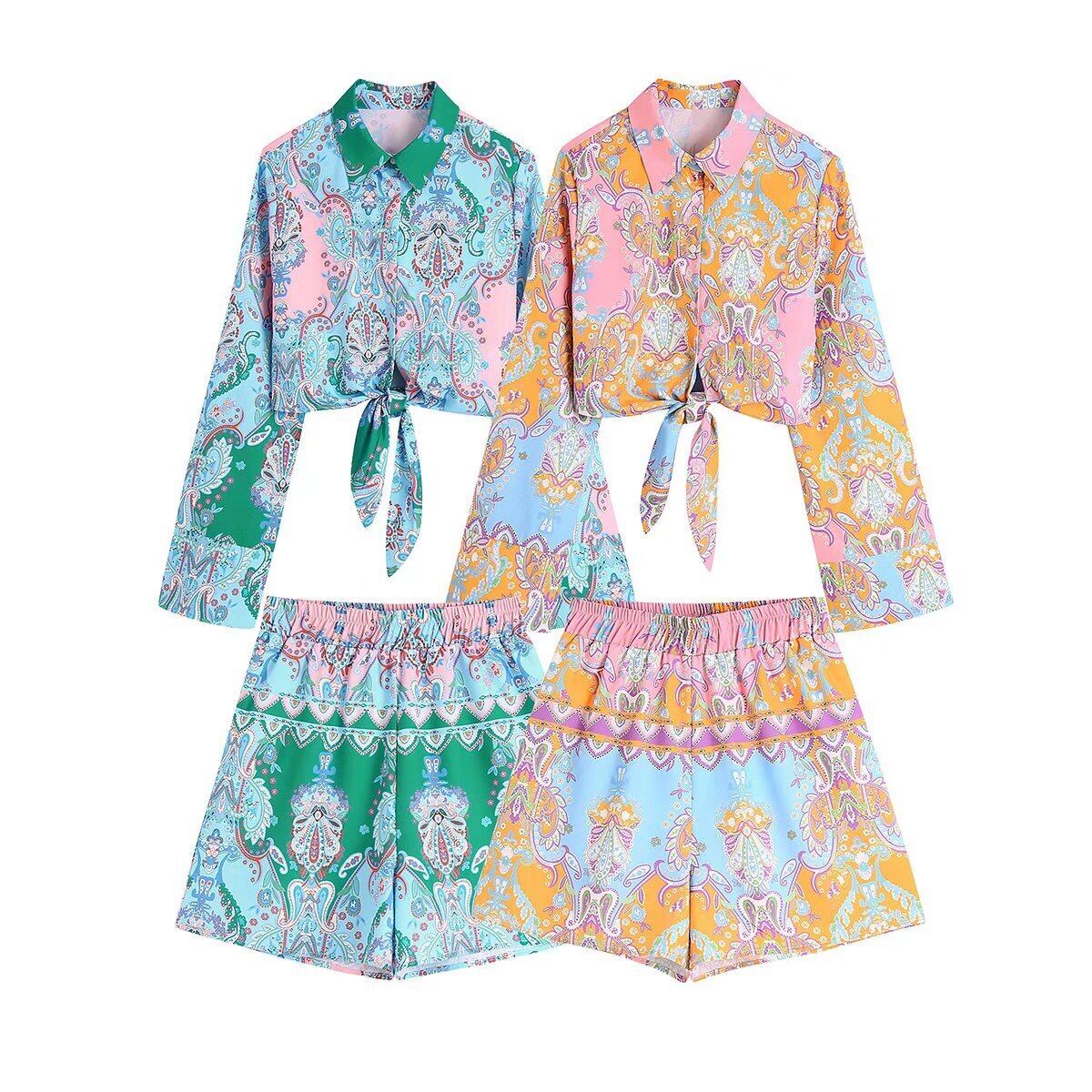 レディースコートフローラルプリントノットショートスモックブラウスOLレディブレストソフトタッチシャツシックトップスLS1736 花柄 会社 学校 通勤や通学にも