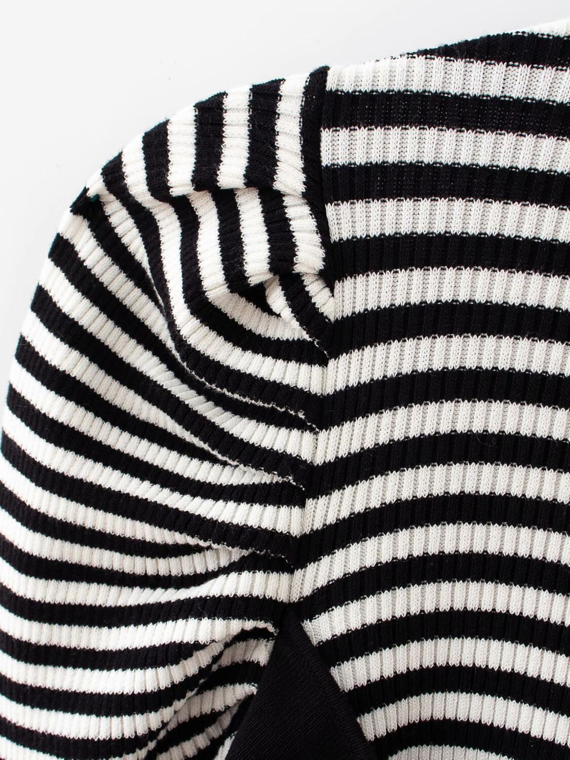 新しい女性ヴィンテージカラー数学パッチワークストライプ編みセーターレディースパフスキーブセーターシックなプルオーバートップスS306 ビンテージ
