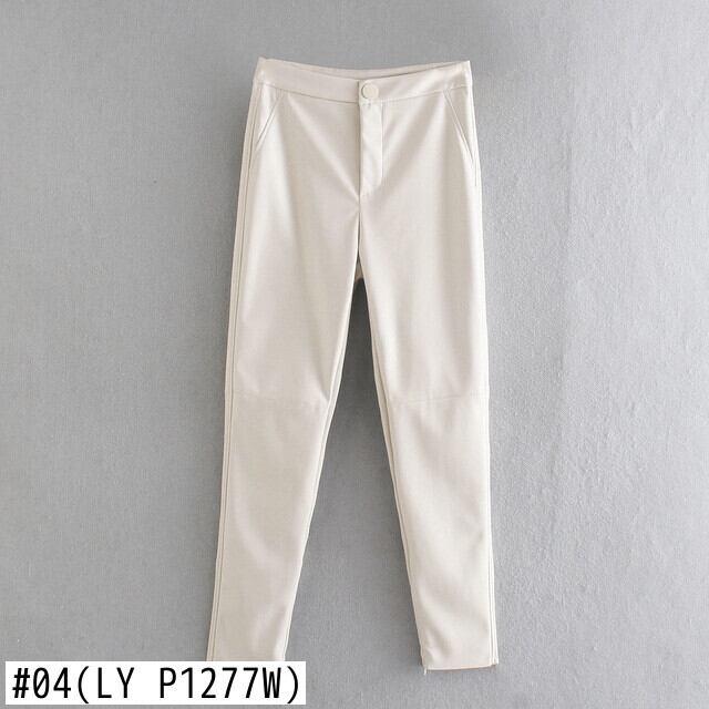 女性キャンディーカラーパッチワークフェイクレザー足首丈ペンシルパンツジッパーパンツパンタロンP1277 ファー