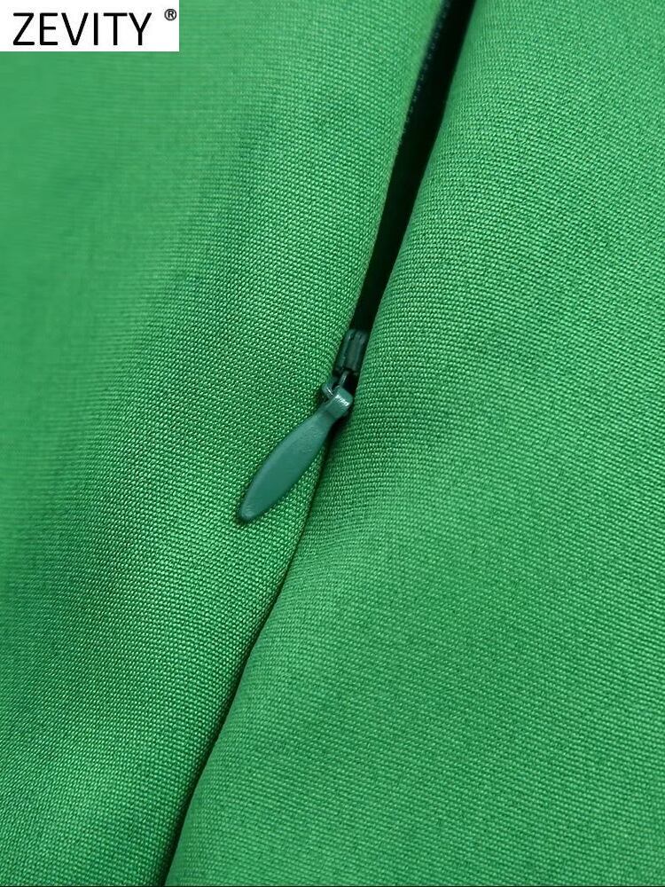 女性用ソリッドバックルサッシュグリーンストレートミドルスカートファルダスシックジッパースプリットスリムベスティドスQUN967 ソリッドカラー