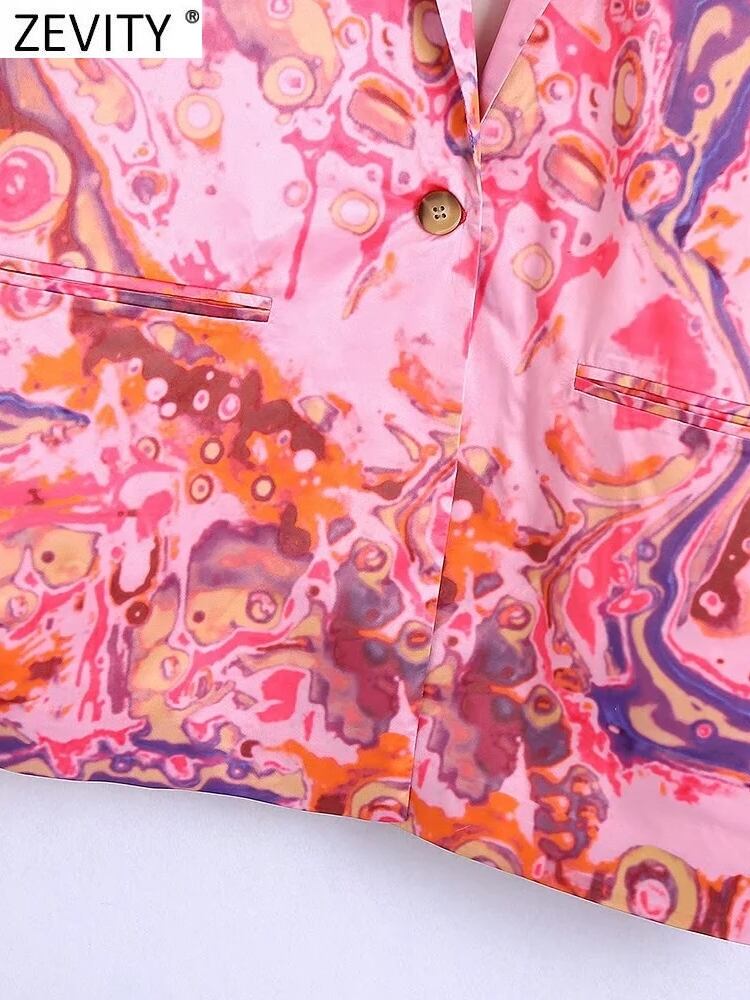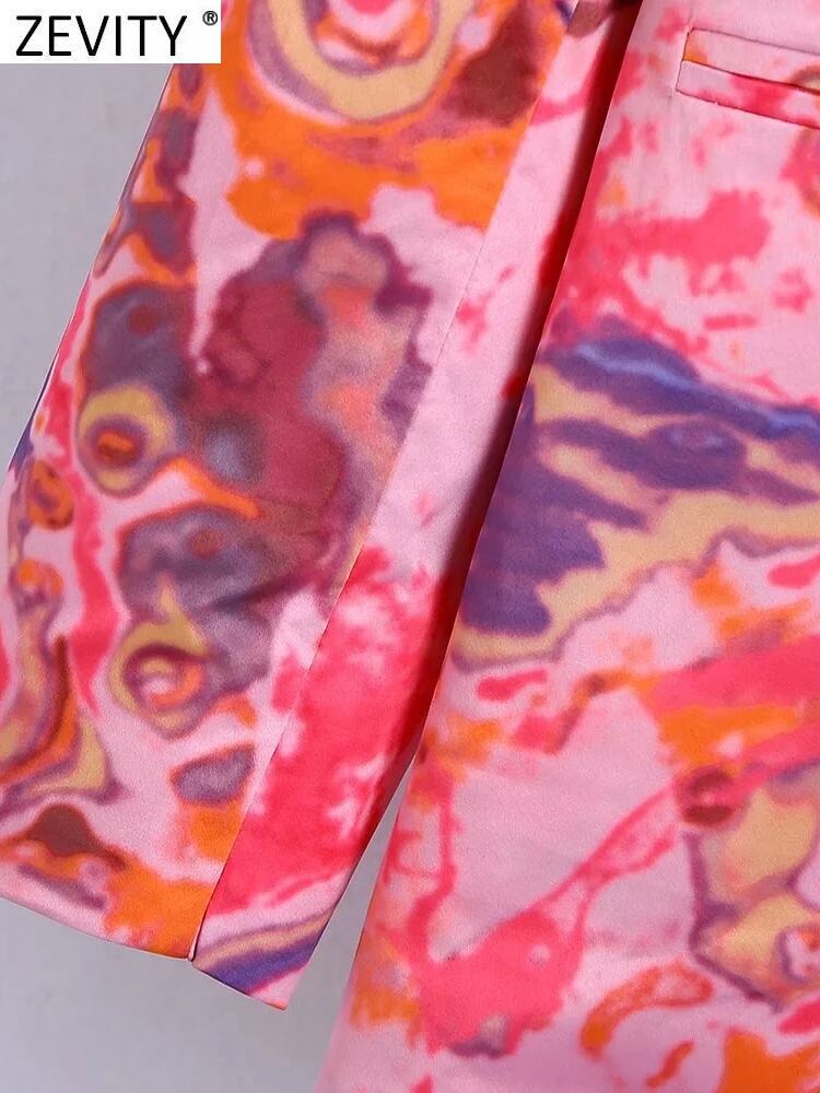 ZEVITY Women Tie Dyed Patchwork Print Soft Touch Blazer Coat Office Lady Chic Pocket Business Suits Veste CT1388 会社 学校 通勤や通学にも