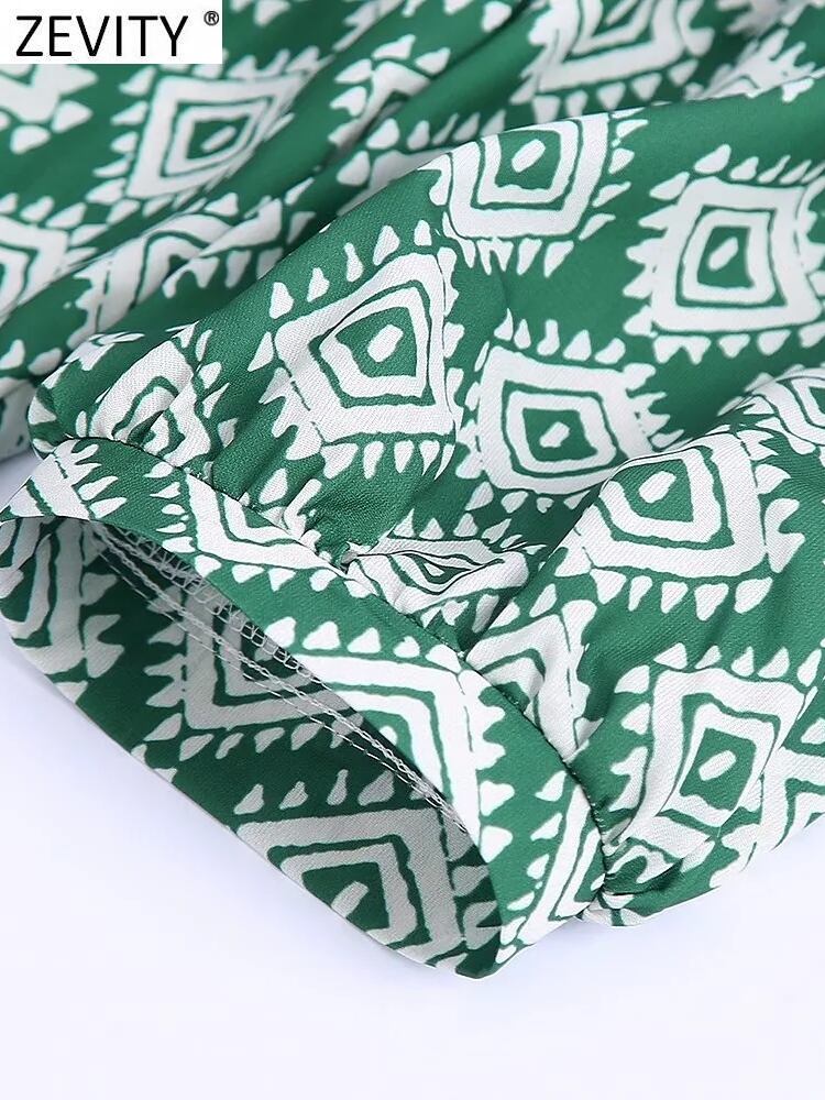女性の幾何学的なプリントルーズミニシャツドレスシックなレースアップ裾プリーツフリル ラッフル