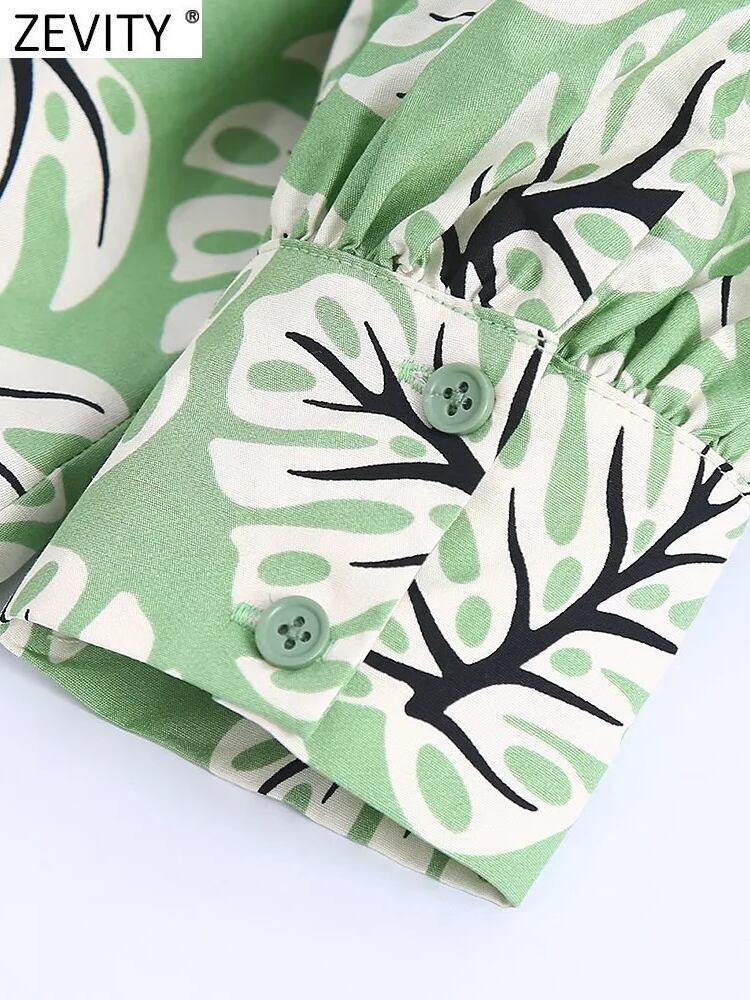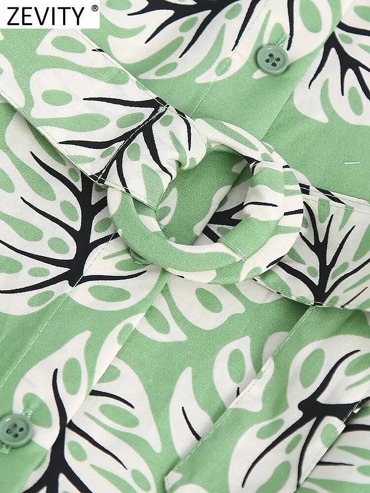女性の葉プリントサッシシャツミニドレスオフィスレディシック長袖スリムボタン ロング 会社 学校 通勤や通学にも