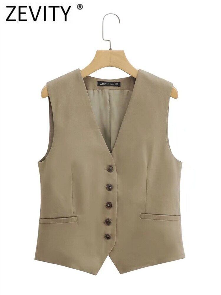 女性 V ネック ノースリーブ シングル ブレスト リネン ベスト ジャケット オフィス スリム ウエストコート トップス CT1642 Vネック 会社 学校 通勤や通学にも