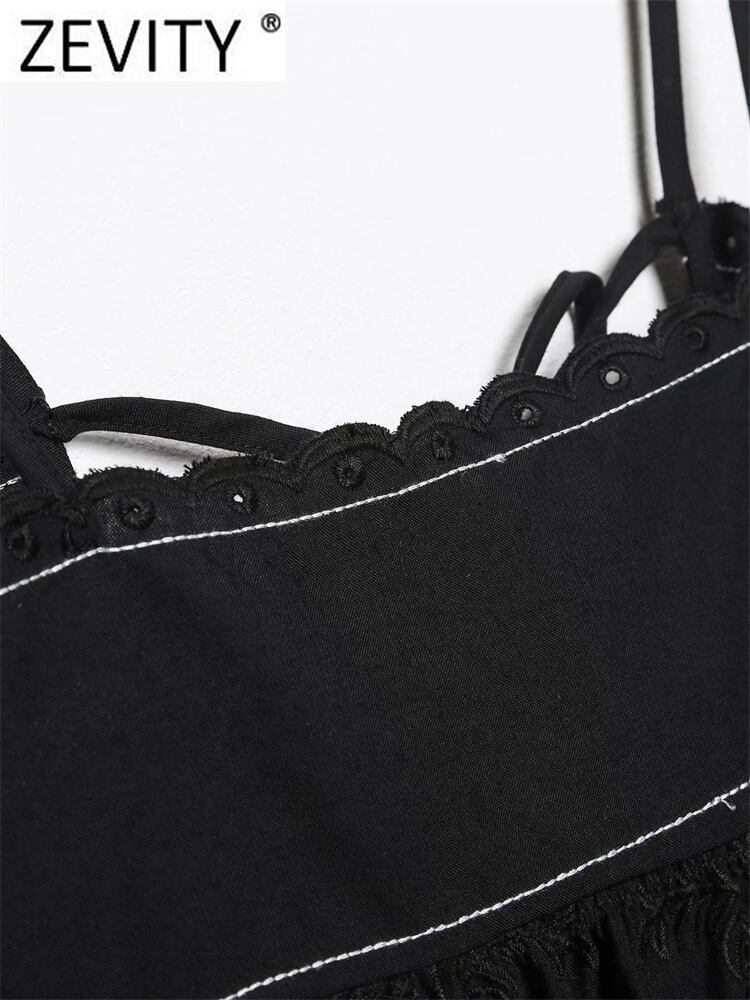 女性中空刺繡ブラックスリングスモックブラウスレディシックバックレスレースアップシャツトップスLS768 刺繍