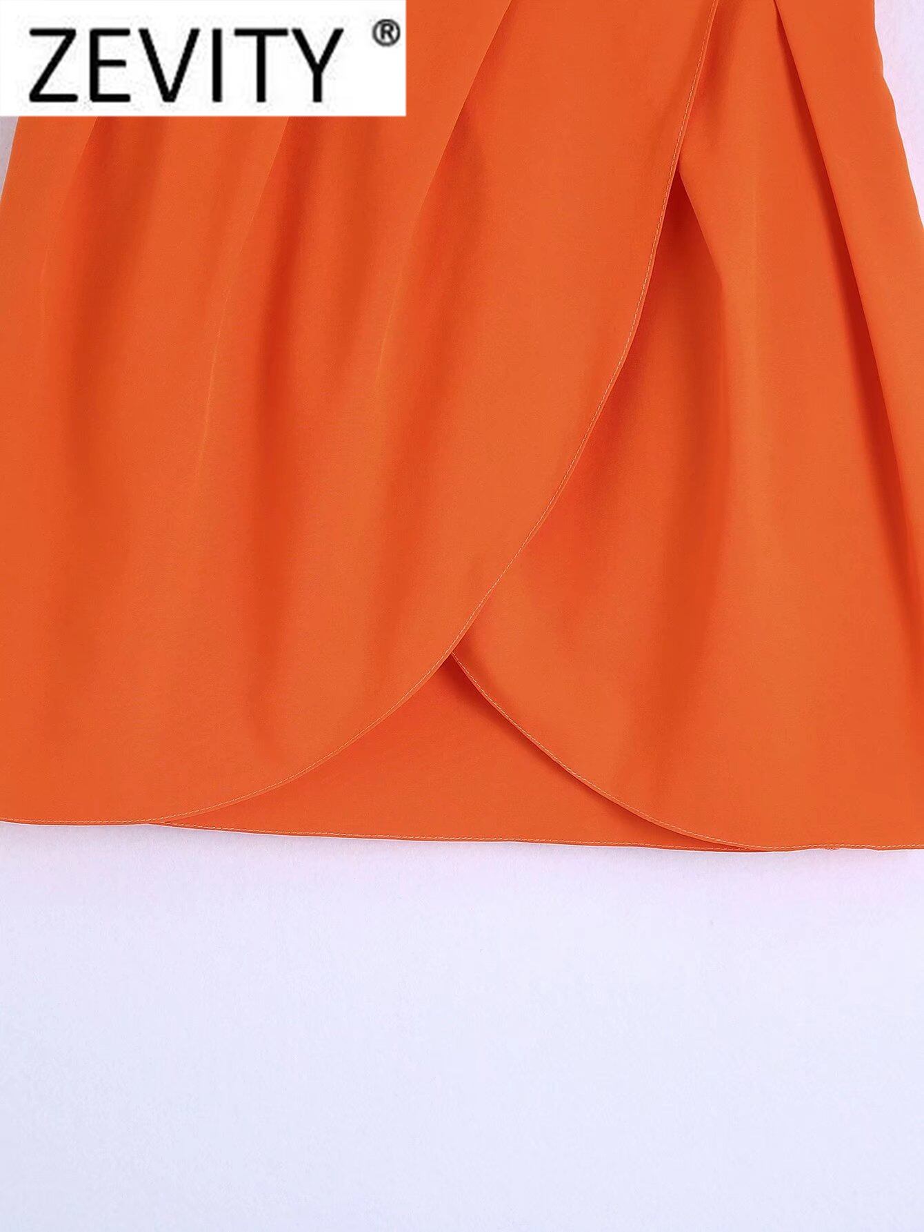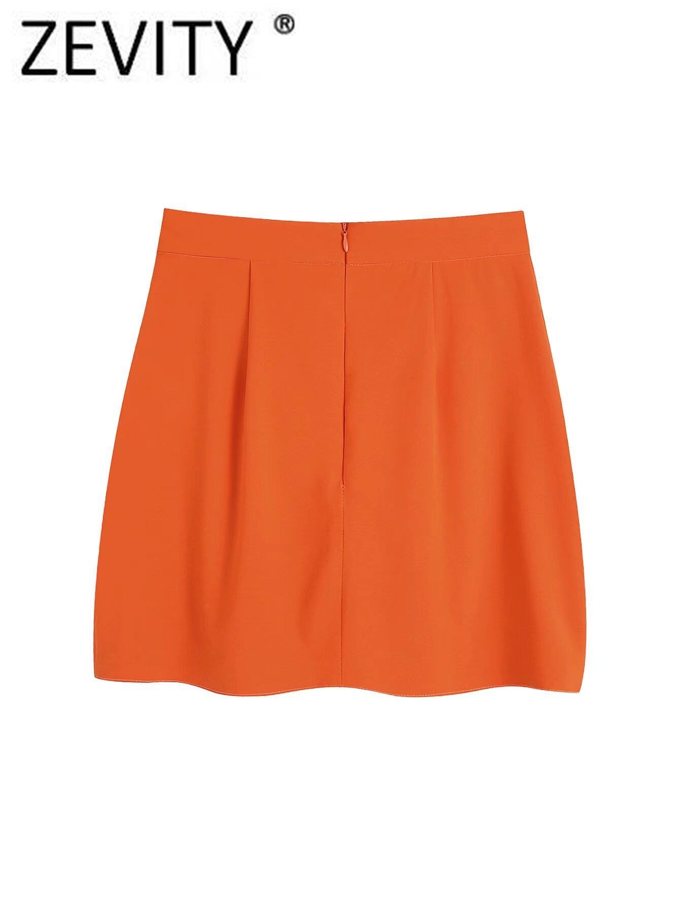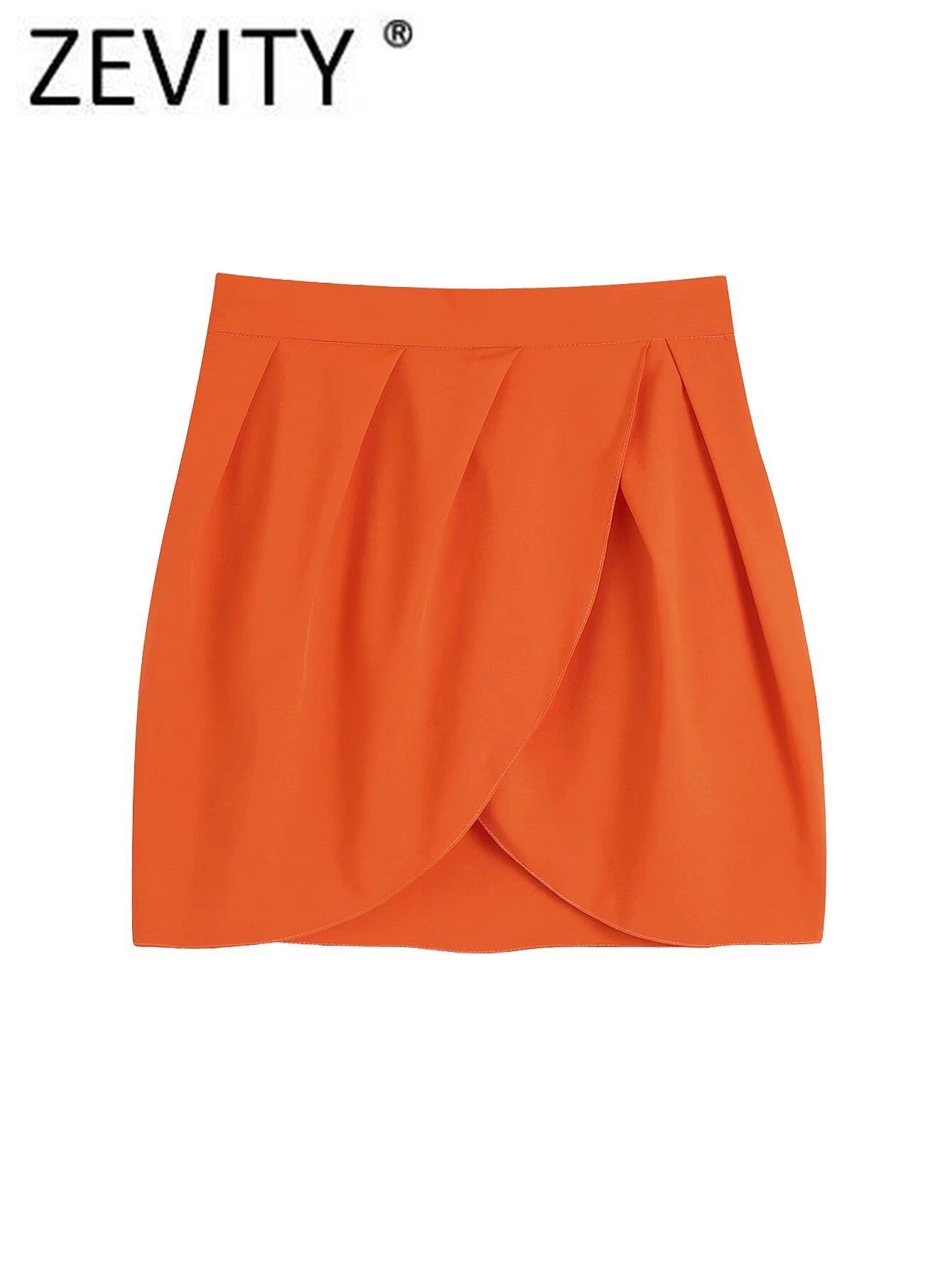 女性プレスプリーツオレンジスリムミニスカートファルダスシックバックジッパー不規則な