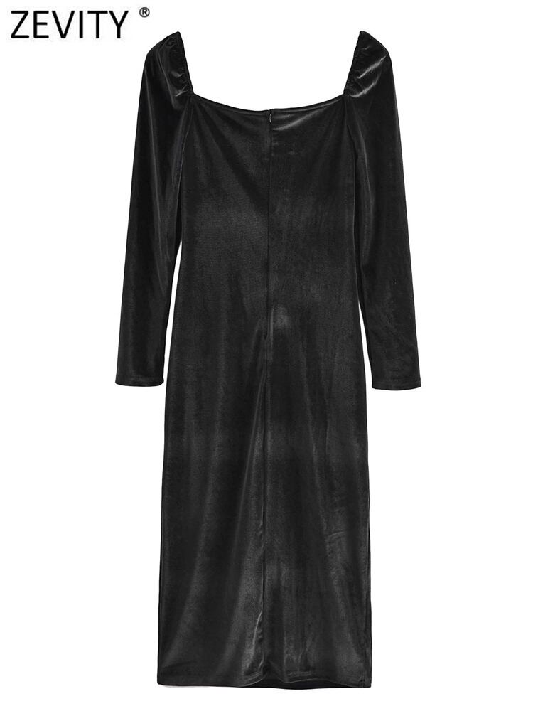 女性セクシーなスクエアカラープリーツボウホローアウトスリムベルベットミディドレスバックジッパーVestidosシックなドレスDS1252 リボン スクウェア
