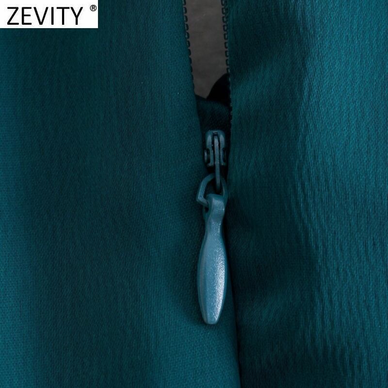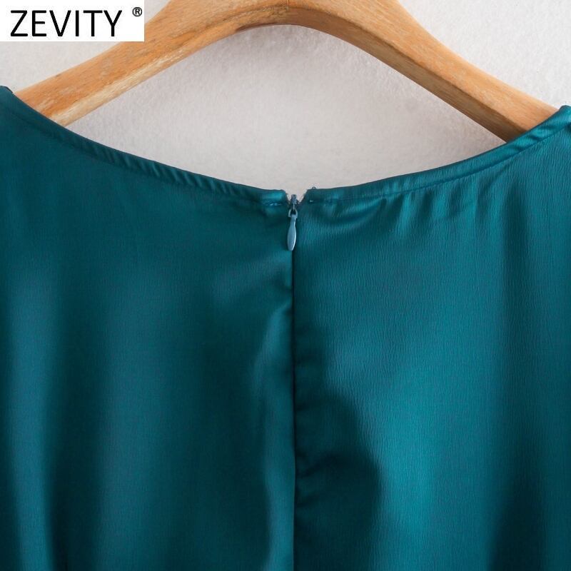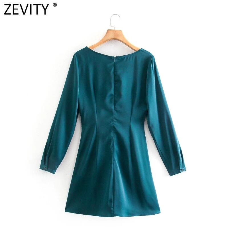 ZEVITYWomenVネックドローストリングレースアップサテンミニドレスシックなバックジッパースリム