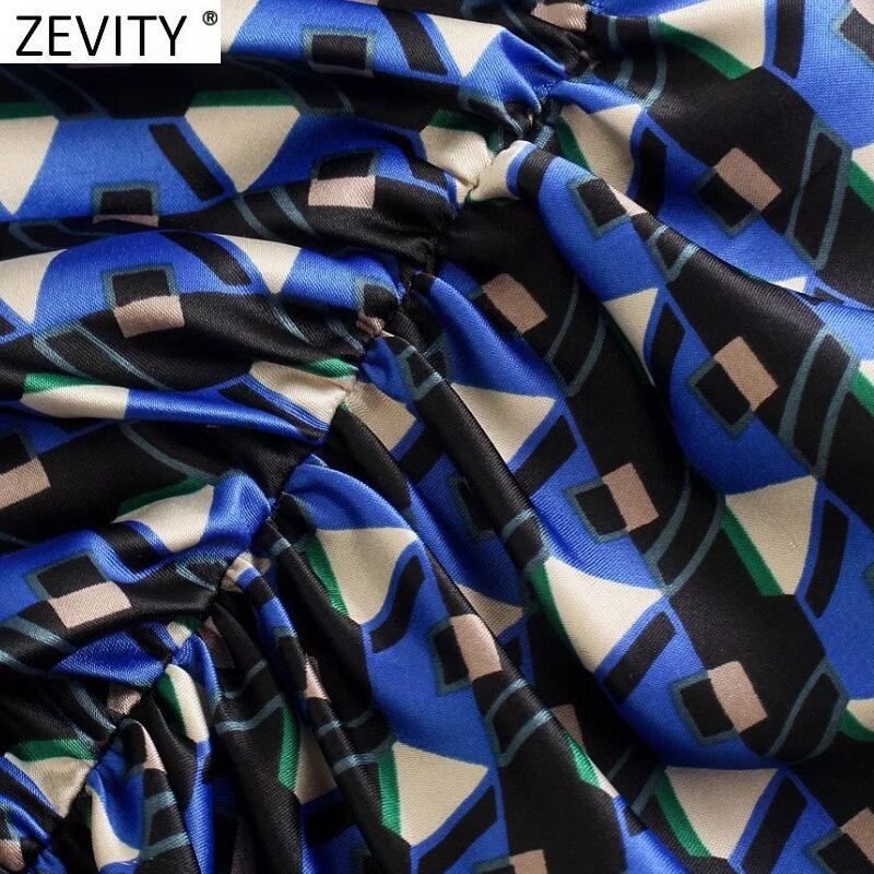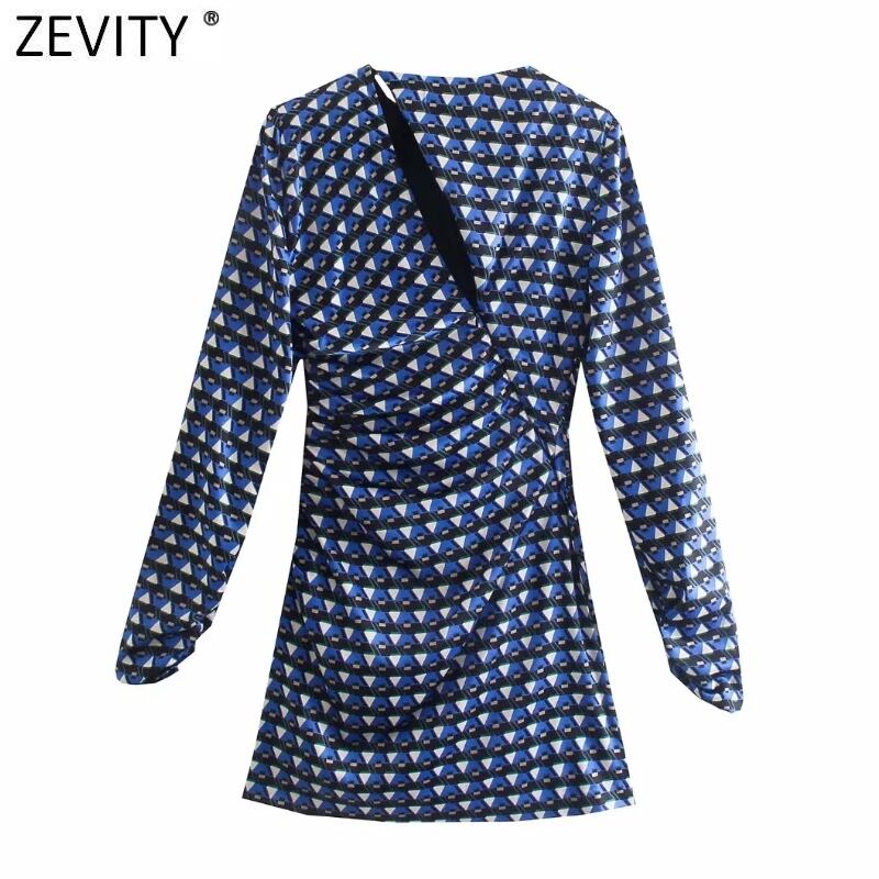 ZEVITY 女性ストリート幾何学プリントプリーツスリムミニドレスシックなバック中空アウトジッパーパーティー Vestidos DS8930