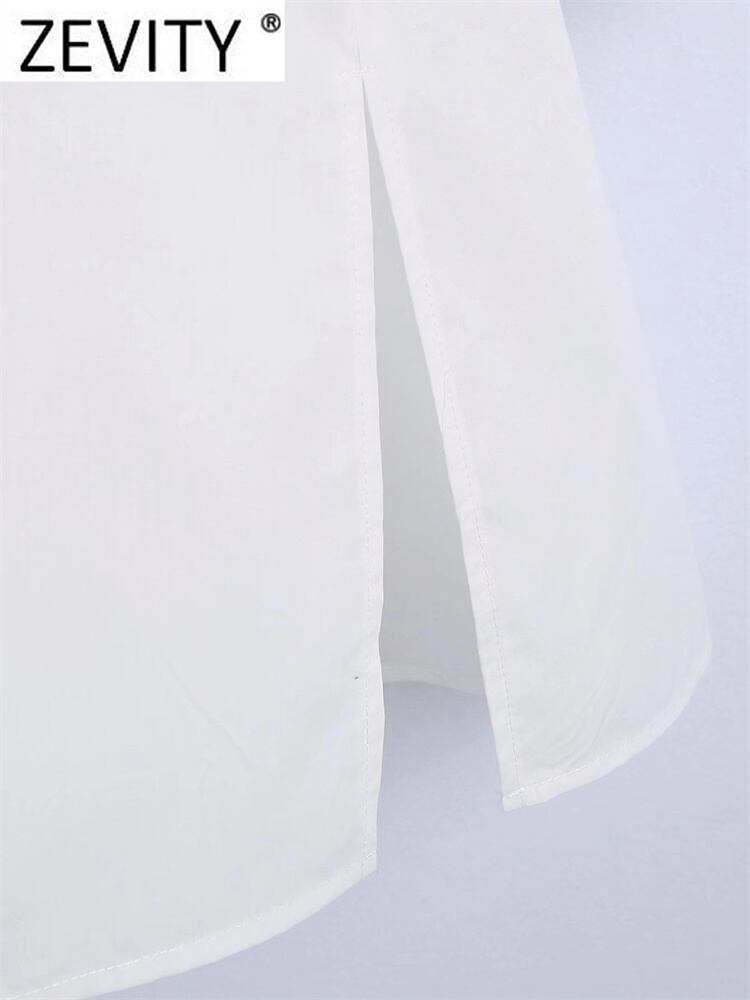 女性ポケットパッチサイドスプリットホワイトロングシャツオフィスレディビジネスルーズブラウスルーパスシックトップスLS948 会社 学校 通勤や通学にも