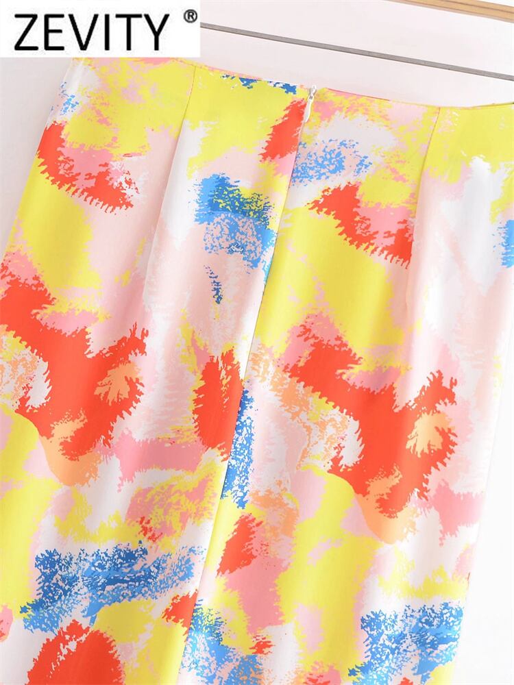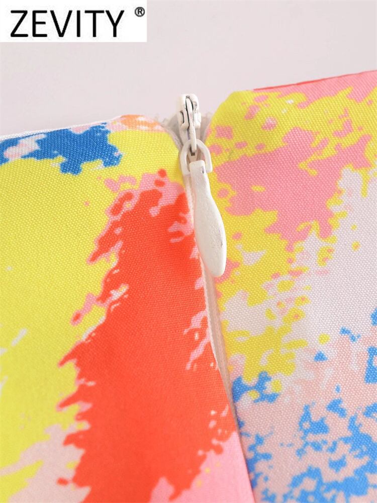 女性カラフルな絞り染めの印刷プリーツサロンミディスカートファルダスバックジッパースプリットベスティドスQUN689