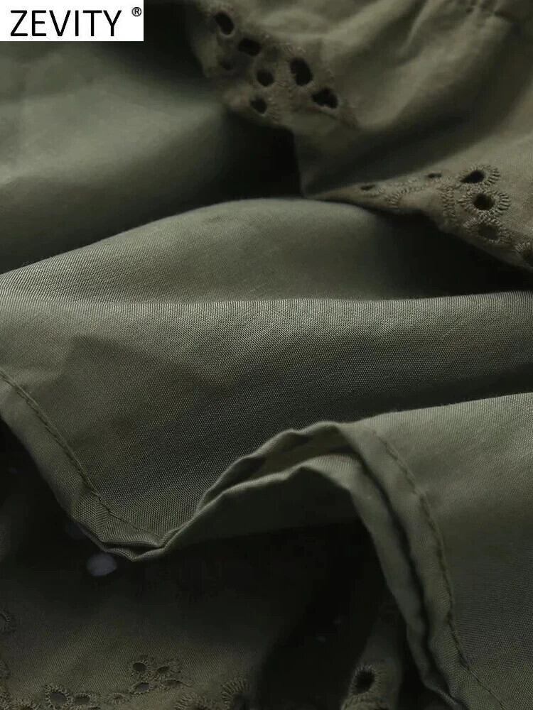 女性の中空刺繡フリル弾性スリムミディドレスボウタイストラップVestidosシックDS1318 リボン ラッフル 刺繍 エラスティック 伸縮