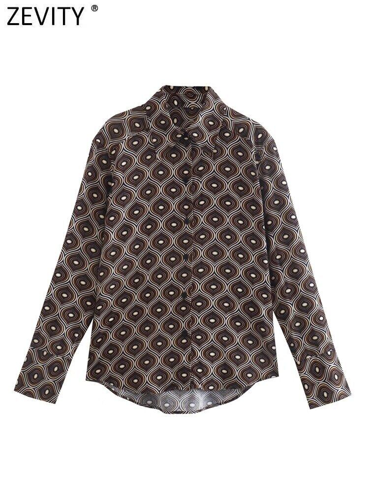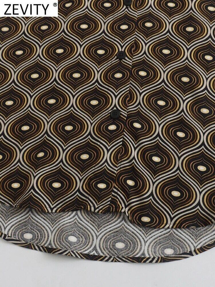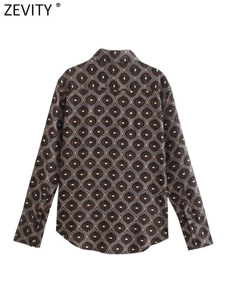 女性の幾何学的なプリントブラウスオフィスシングルブレストシャツシックなトップスLS10116 会社 学校 通勤や通学にも
