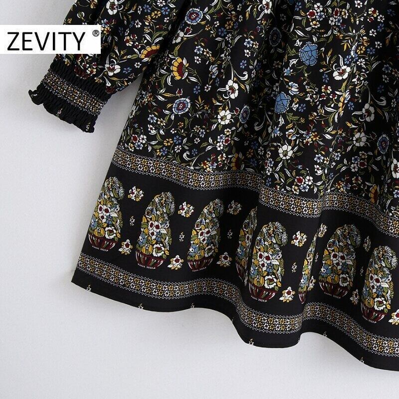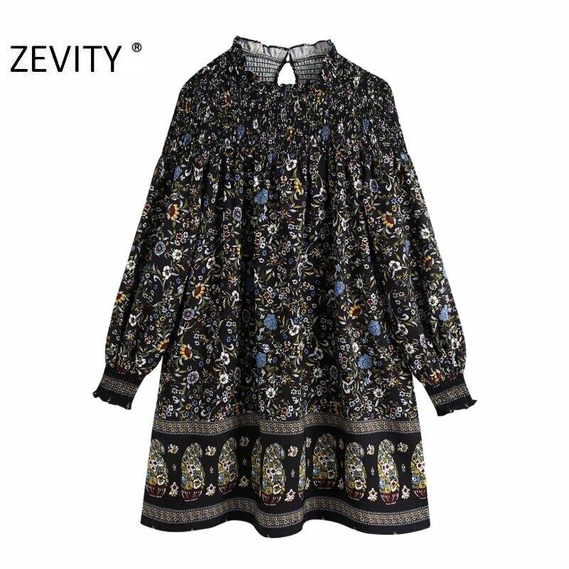 ZEVITYレディースヴィンテージトーテムフラワープリントコートミニドレスファム長袖着物vestidoシックカジュアル伸縮性ドレスDS4480 ロング エラスティック トートバッグ フェミニン フラワーデザイン ビンテージ