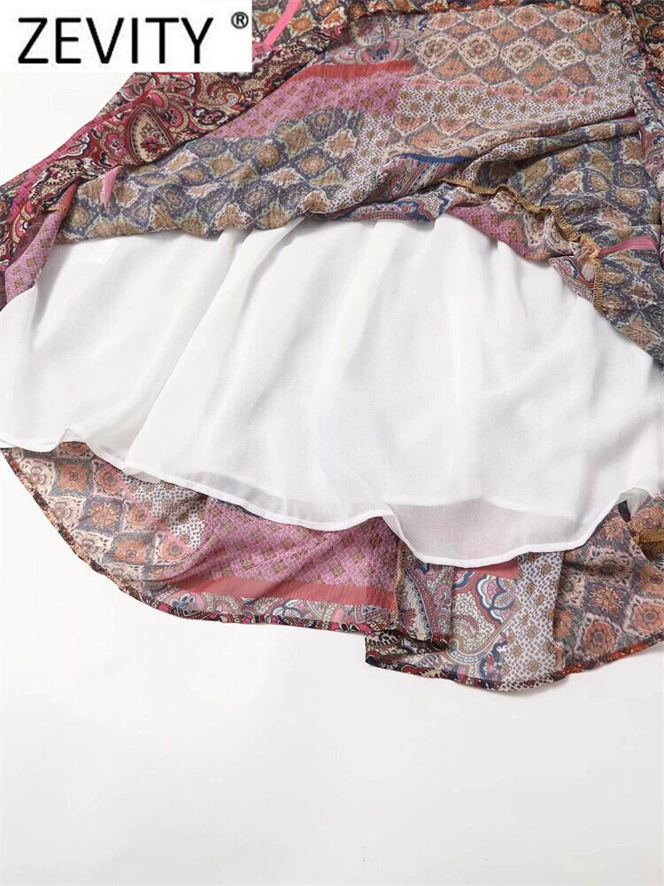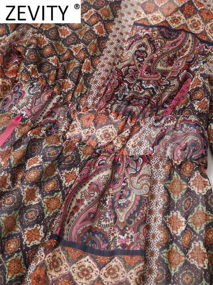 女性 V ネック パッチワーク ペイズリー プリント ボタン ミディ ドレス シックな七分袖 Vestidos DS957 Vネック