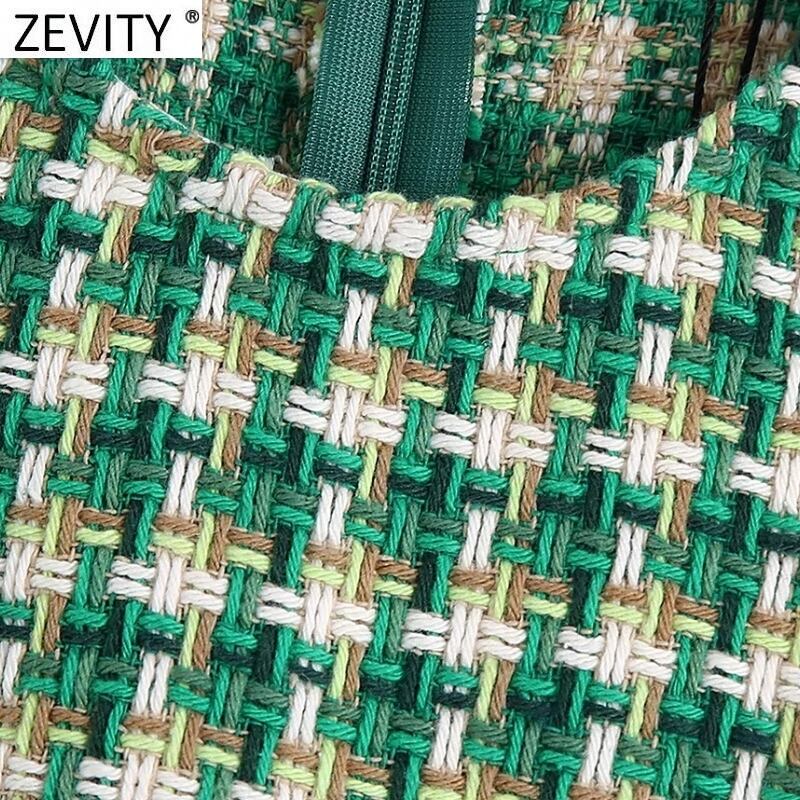 ZEVITYWomenOネックミックスカラーチェック柄ツイードウールミニドレスシックなバックジッパースリムベスト