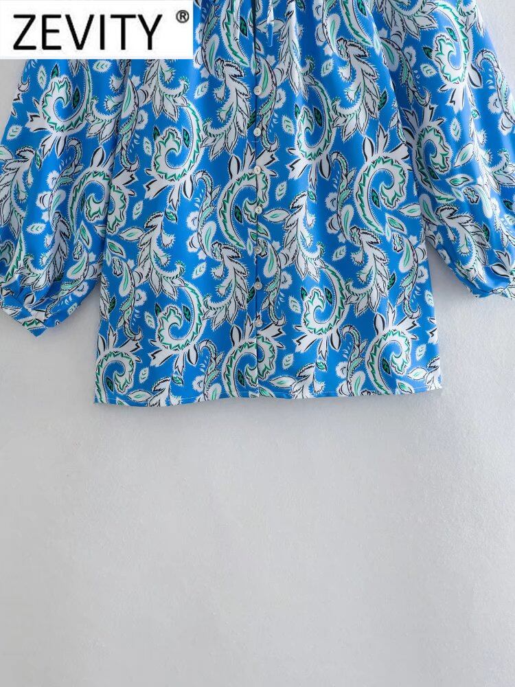 女性ペイズリーフローラルプリントルーズブラウスOLレディスリークォータースリーブシャツシックトップスLS1255 花柄 会社 学校 通勤や通学にも