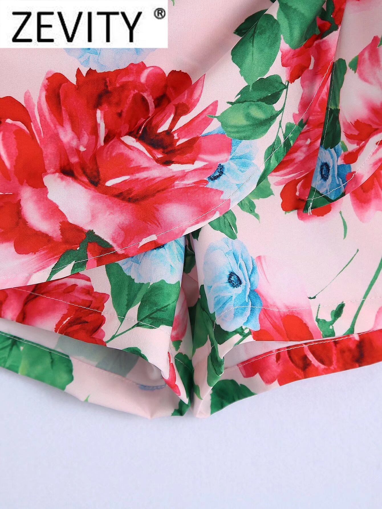 ZEVITYレディースレッドフローラルプリントボウノットサロンショーツスカートジッパーフライホットショーツシックなパンタローネコルトスP1045 リボン ブルマー 花柄
