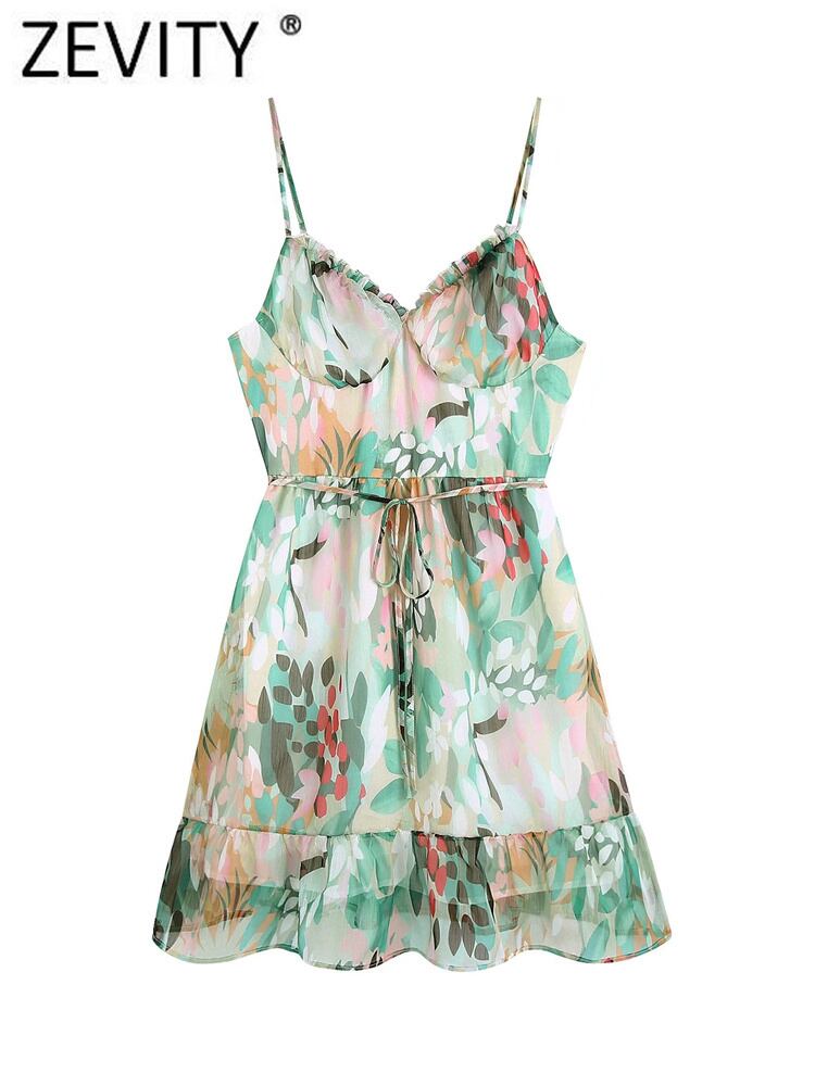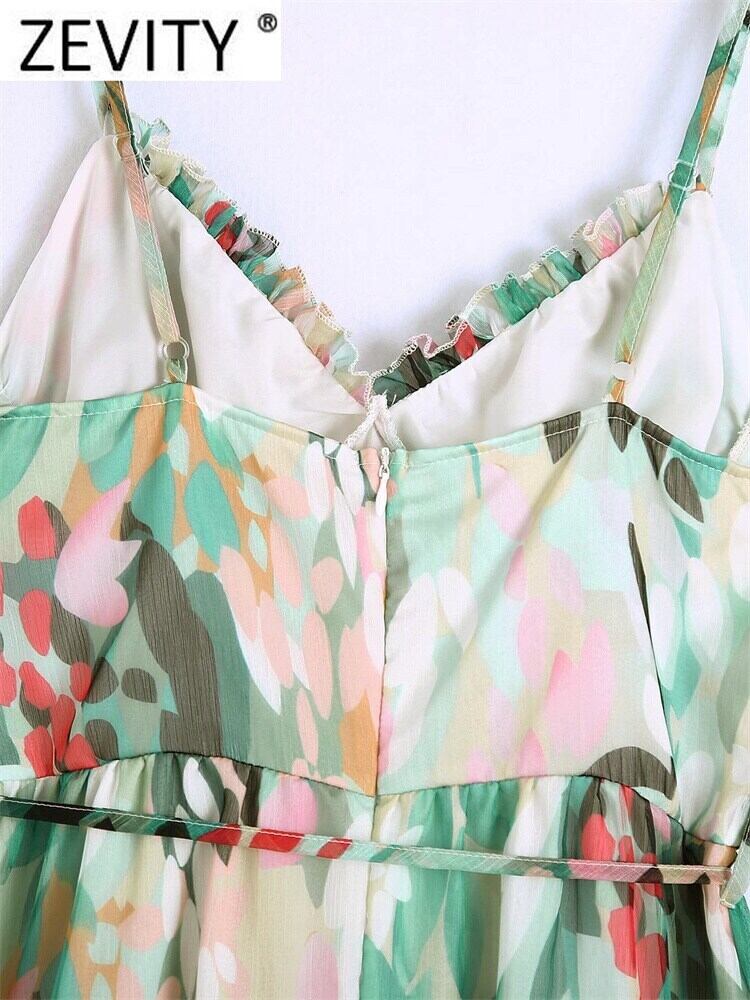 女性Vネックアガリックレースフローラルプリントスリングドレスシックなスパゲッティストラップベルトシフォンビーチ ハーネス 花柄