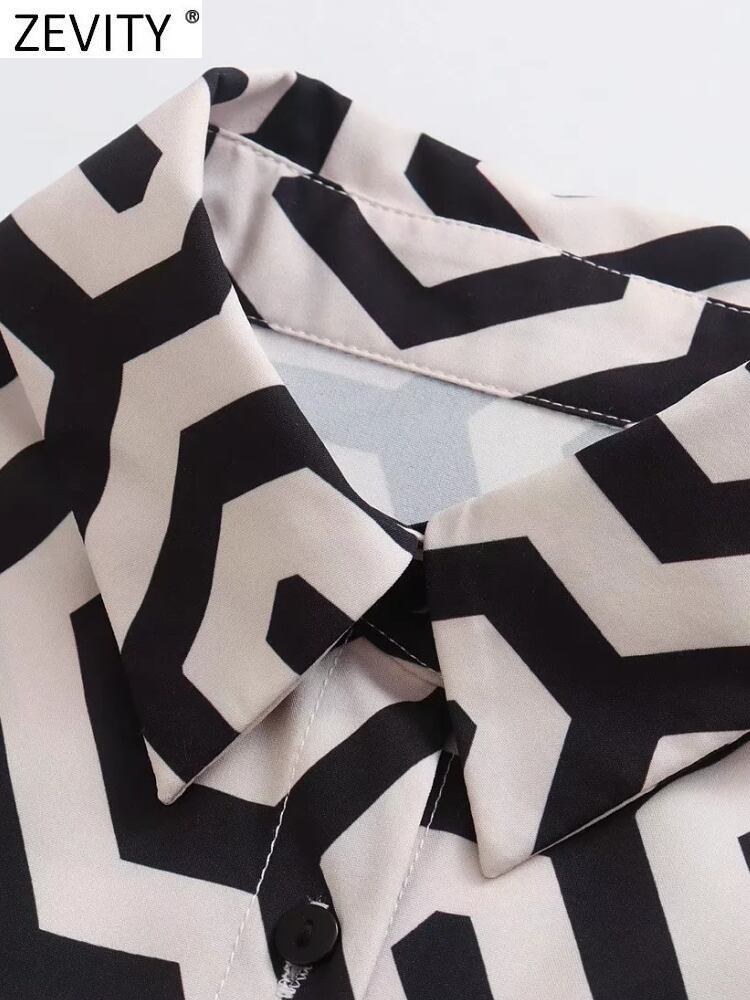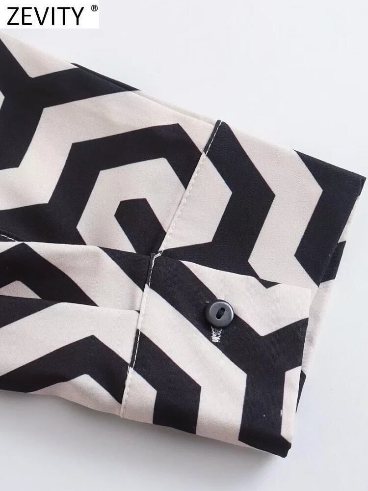 女性の幾何学的なプリント胸のスモックブラウスオフィスレディポケットパッチビジネストップスLS1610 会社 学校 通勤や通学にも