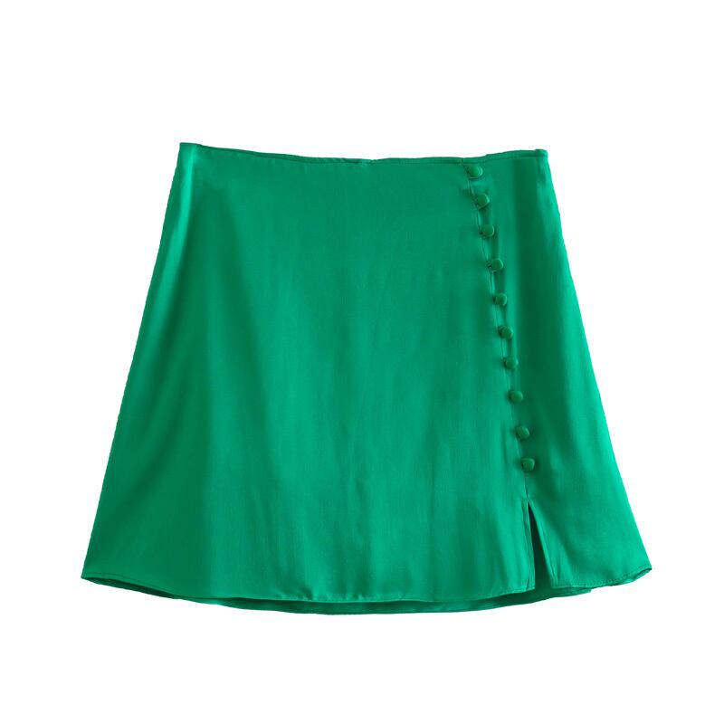 女性シングルブレストソフトサテンスプリット A ラインミニスカート段 Faldas サイドジッパー Vestidos QUN1330 Aライン