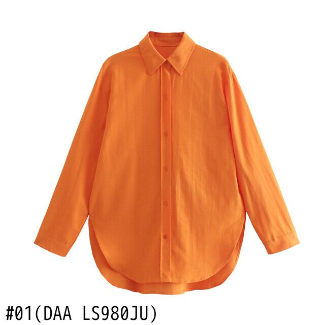 女性特大オレンジリネンシャツオフィスレディ長袖スプリットビジネスブラウスルーパスシックトップスLS980 ロング 会社 学校 通勤や通学にも
