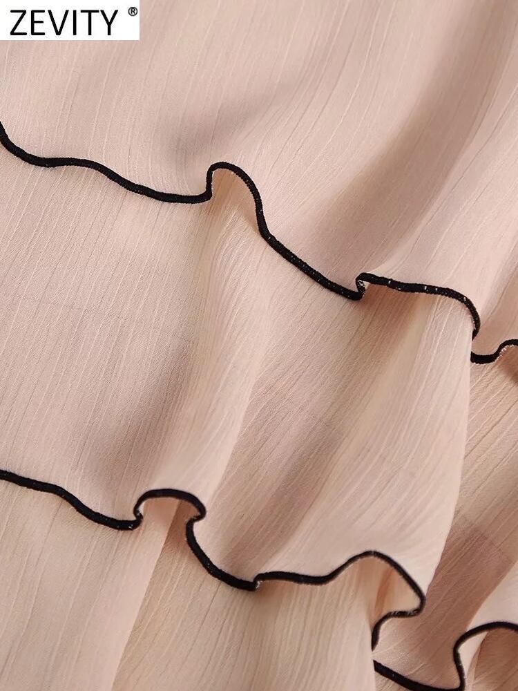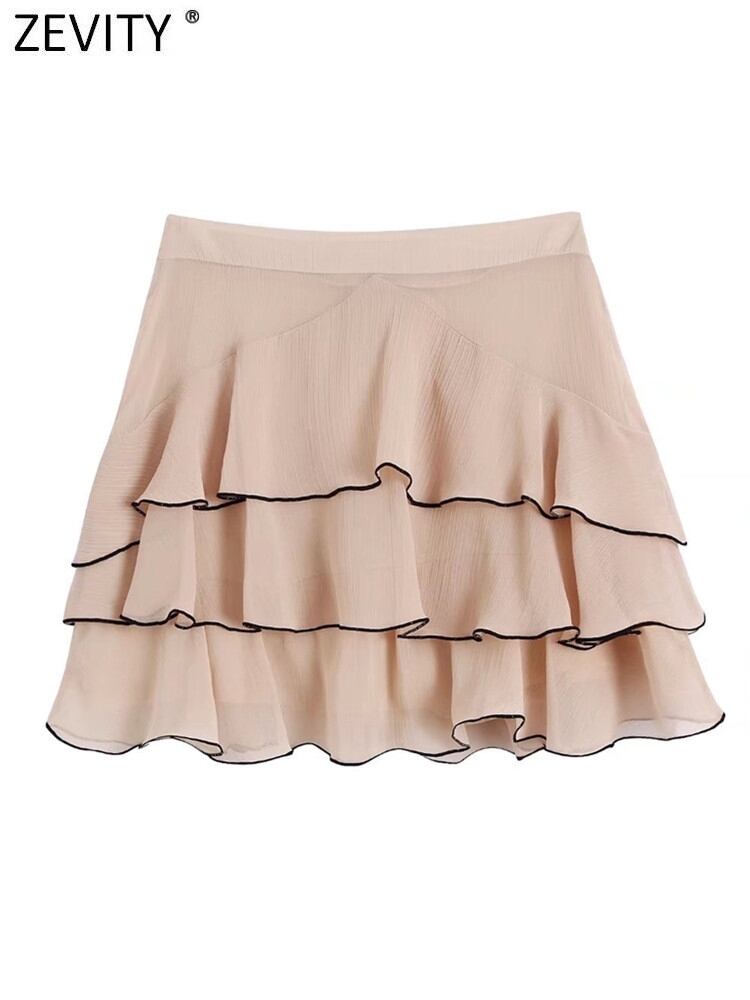 女性カスケードフリル黒エッジミニスカート段 Faldas 女性サイドジッパー Vestidos シックなシフォンスカート QUN551 ブラック ラッフル
