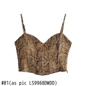 女性シックなスパゲッティストラップスネークスキンプリントスリングキャミソールタンクストリート夏ショートスリムクロップトップス LS9968 サマー 夏物