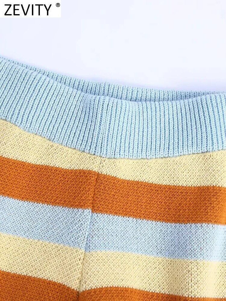 ZEVITYWomenカラフルストライププリントニットショーツホットショーツシックなパンタローネコルトスP419 ブルマー