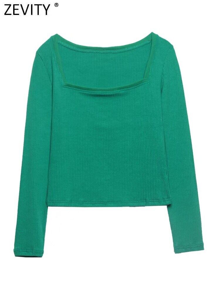 女性無地ニット Tシャツベーシックスクエアカラーロングスリーブシックなトップス T490 長袖 ソリッドカラー スクウェア シンプル