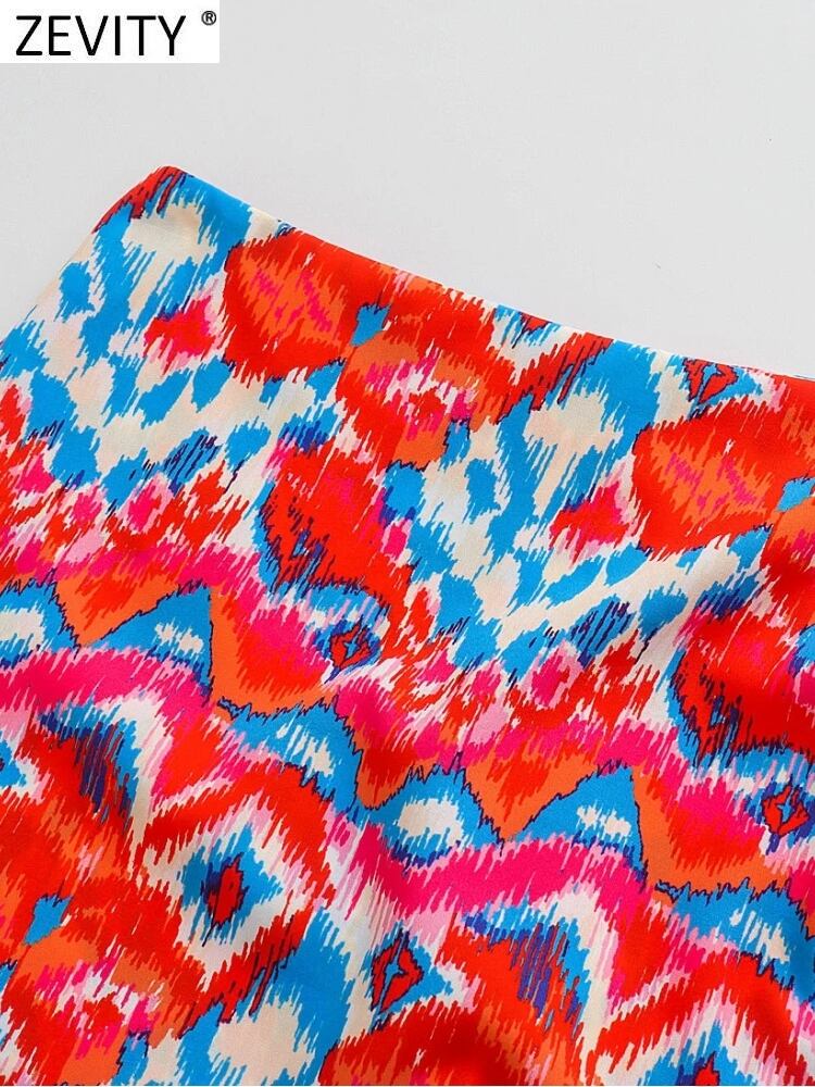 ZEVITY 女性赤インク花柄ボウタイドサロンショーツスカートサイドジッパーショーツシックなパンタロン Cortos P1410 レッド リボン ブルマー