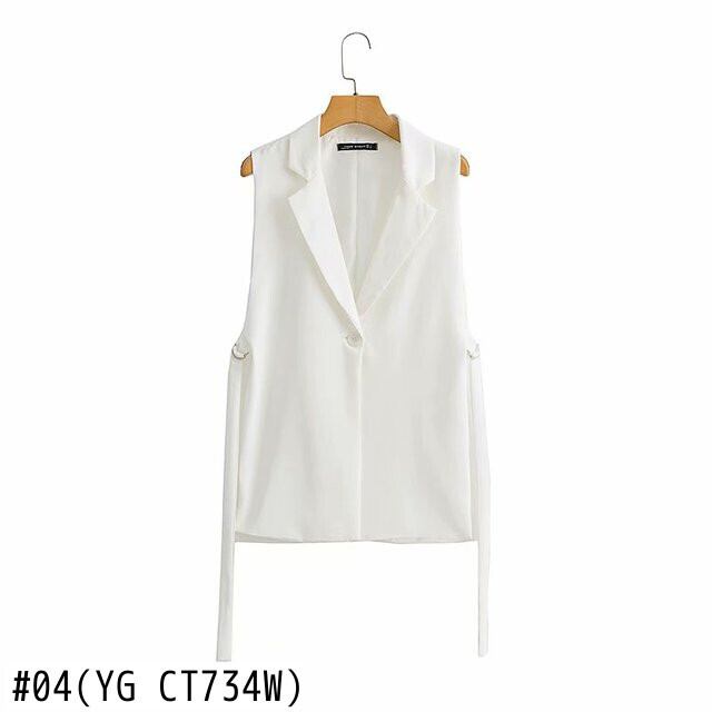 女性2021ソリッドサイドスプリットワンボタンベストノースリーブアウタースーツシックなアウターチョッキCT734 ソリッドカラー