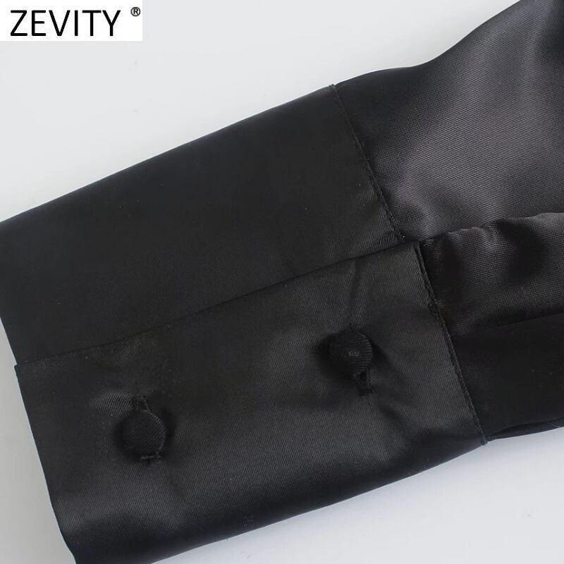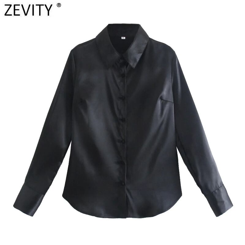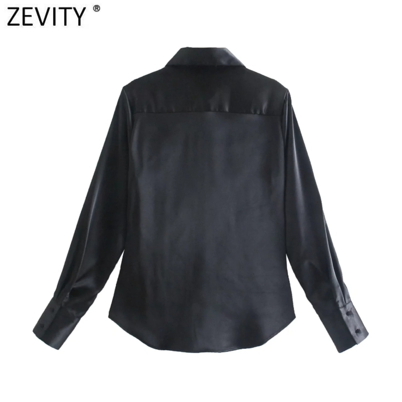 女性ソフトタッチブラックサテンブラウスオフィス長袖ブレストスリムシャツシックなトップスLS9922 ロング 会社 学校 通勤や通学にも