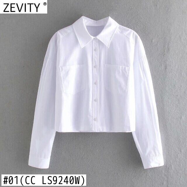女性シンプル無地ダブルポケットパッチショートシャツオフィスレディ長袖ブラウスルーパスシックトップスLS9240 ロング ソリッドカラー 会社 学校 通勤や通学にも