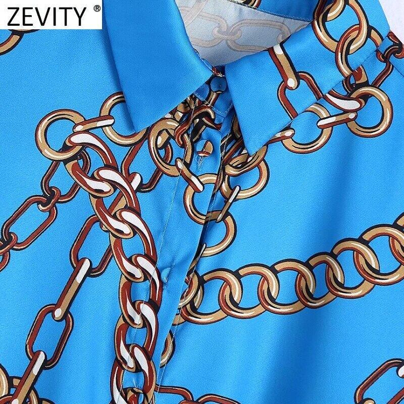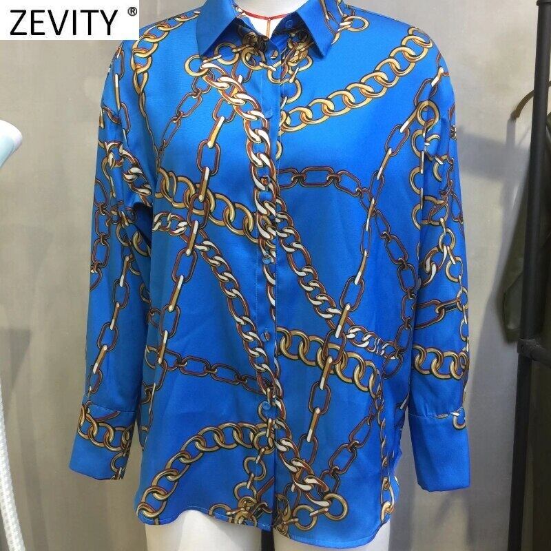 2022 女性チェーンプリントブレストスモックブラウス長袖レトロスリムシャツシックなトップス LS9753 ロング