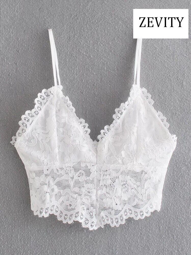 レースクロップタンクトップでセクシーなZEVITYWomenバックレスの細いストラップCamis