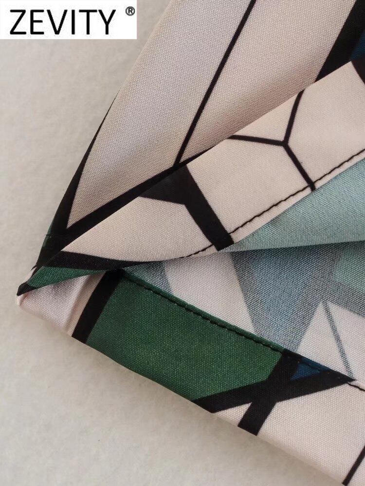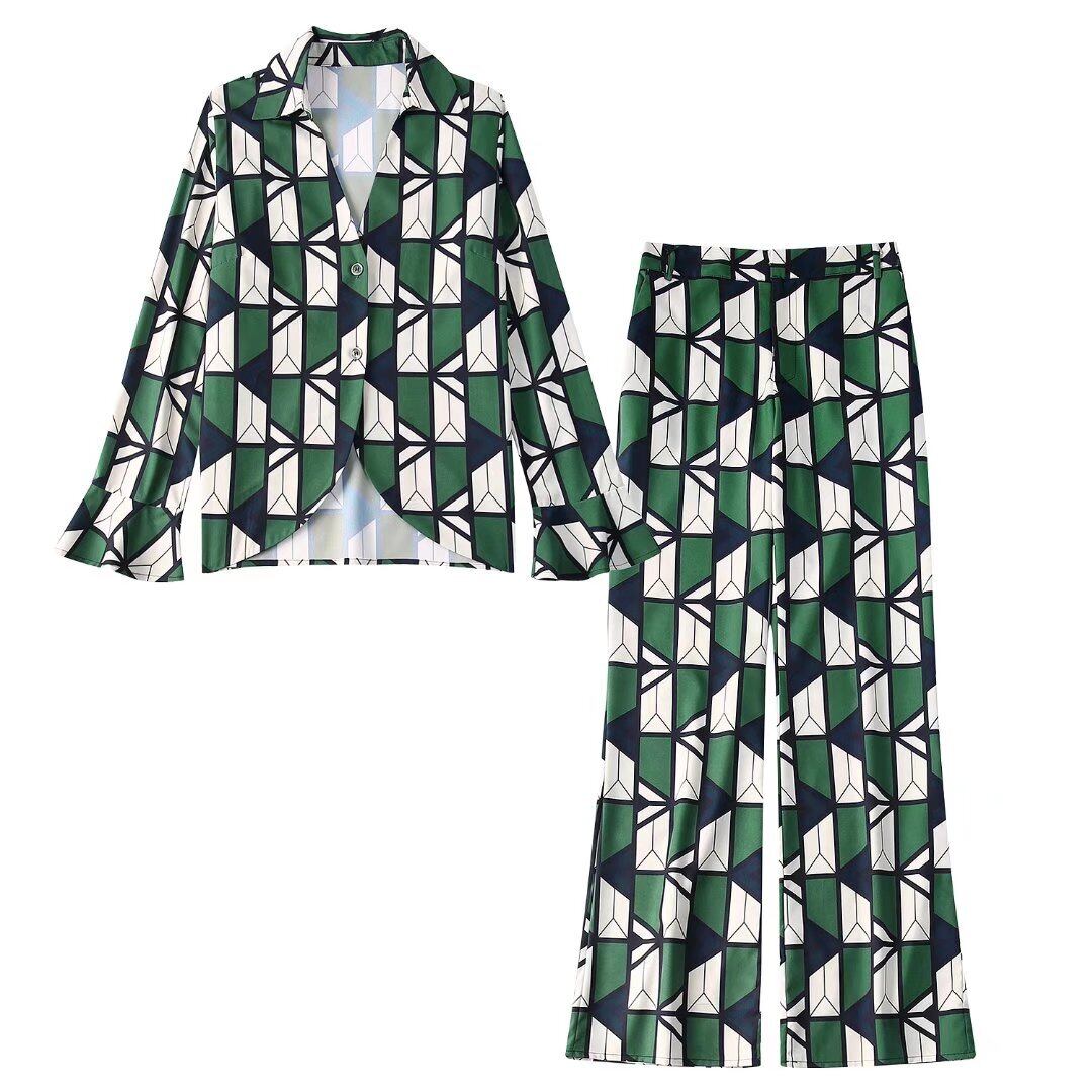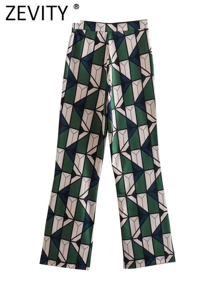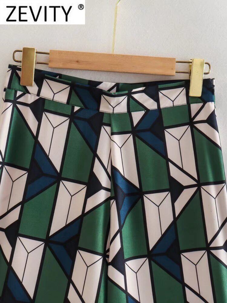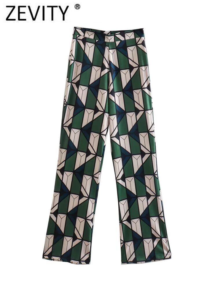 女性コントラスト幾何学プリントフレアパンツシックな弾性ウエストバックポケットズボン Pantalones P1134 エラスティック 伸縮