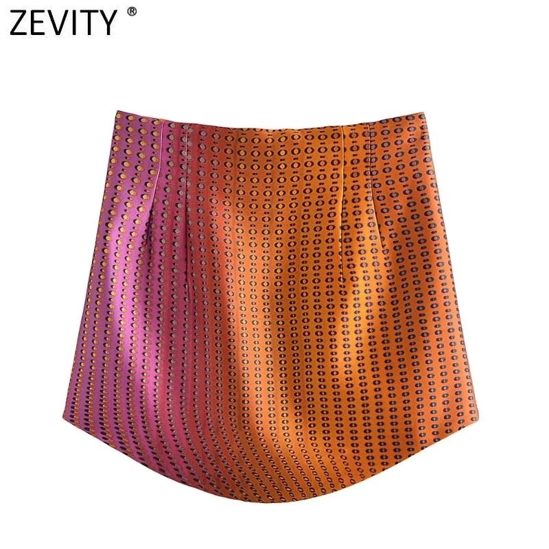 女性ストリートグラデーションカラードットプリントソフトサテンミニスカートファルダスレディシックサイドジッパー
