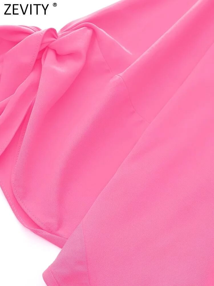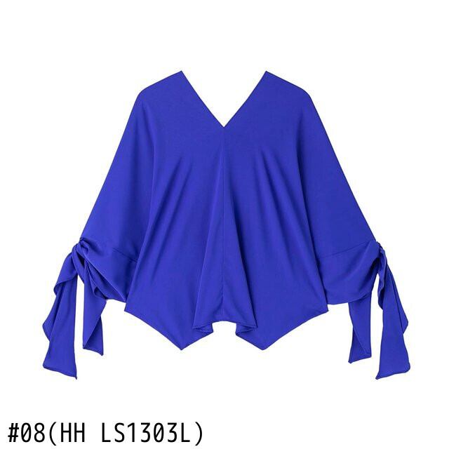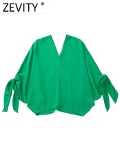 女性 V ネック無地ルース スモック ブラウス蝶ネクタイ バットウィング スリーブ シャツ シックなプルオーバー LS1303 トップス リボン Vネック ソリッドカラー