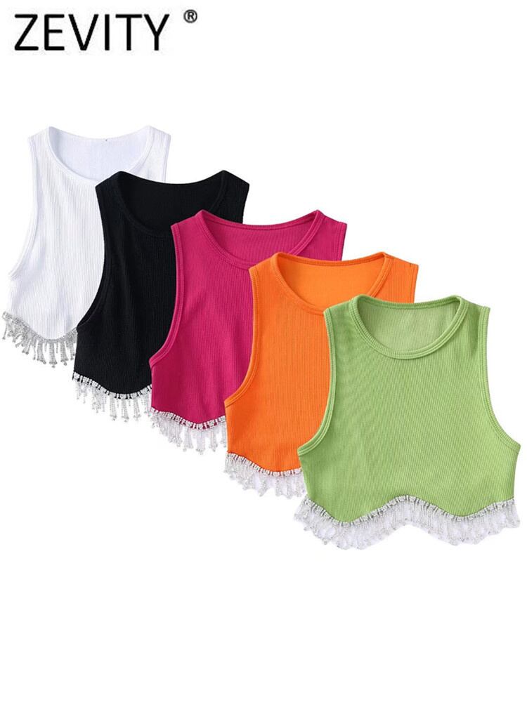 女性セクシーキャンディーカラー裾Telダイヤモンドビーズ編みTシャツシックなショートキャミスタンクレディスリムクロップベストトップスLS1497