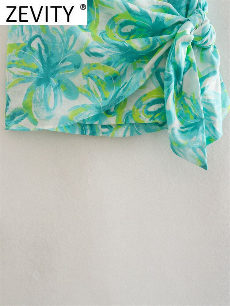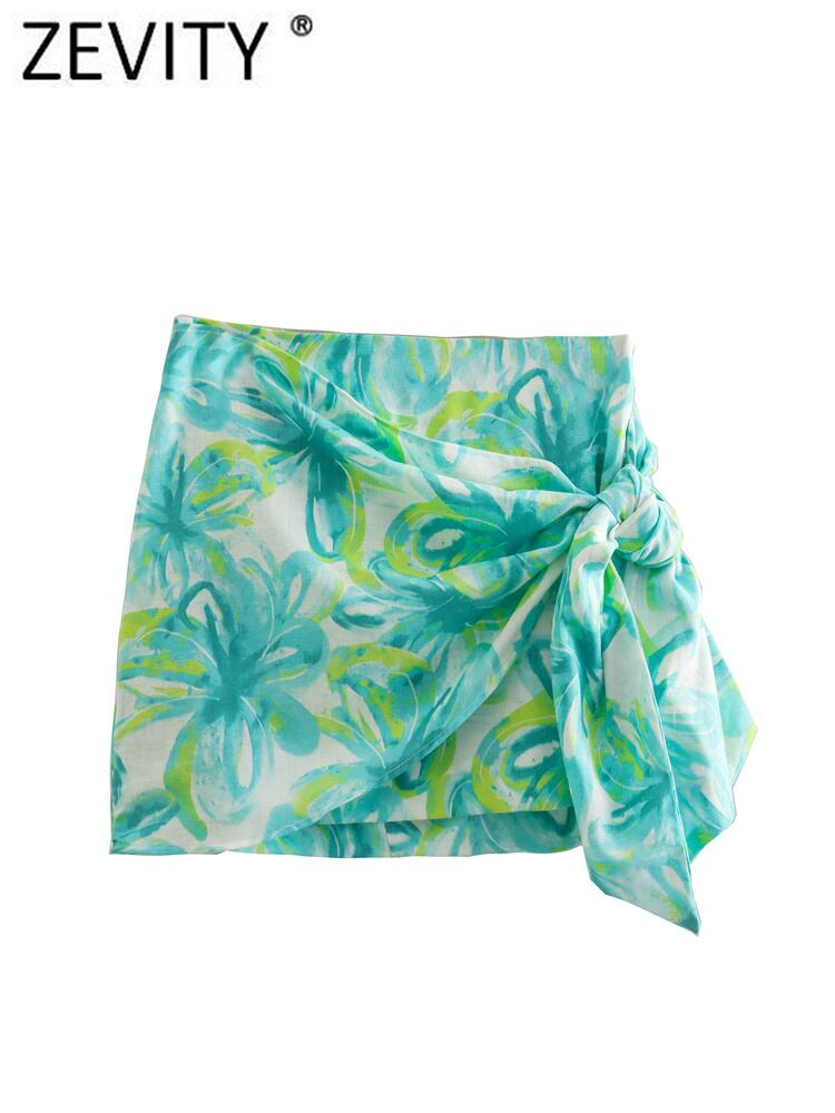 女性トロピカルフローラルプリント蝶ネクタイサロンスカートファルダスシックジッパー裾不規則な リボン 花柄