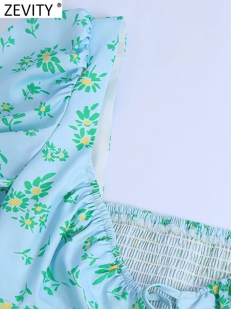 女性フレンチスタイル花柄レースアップショートシャツパフスリーブバック弾性ブラウスシックなクロップトップス LS610 エラスティック 伸縮