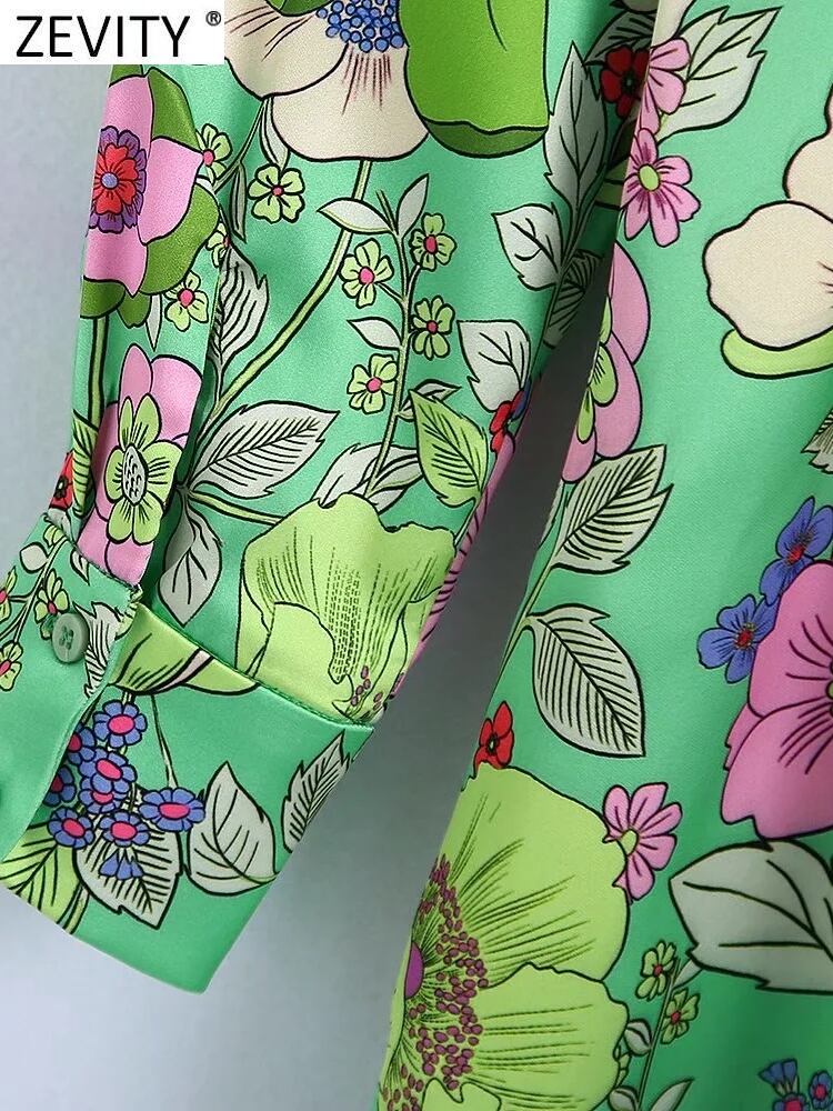 ZEVITY 女性のセクシーなディープ V ネック結び目ソフトサテンミニドレスシックな花柄グリーン Vestidos DS9373 Vネック