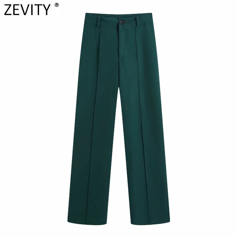 2021 女性のシックなサイドポケットストレートパンツ事務服ウエストジッパーフライズボン P1016 会社 学校 通勤や通学にも